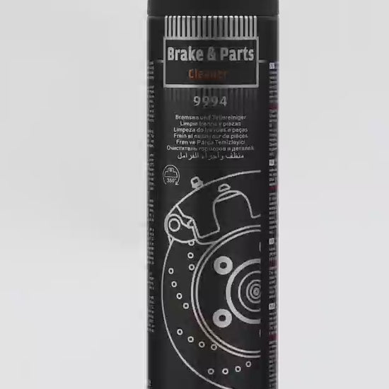 Limpia frenos y piezas, es un limpiador para todas las piezas metálicas del automóvil, el cual posee mejoradas propiedades disolventes y de limpieza activa. Es adecuado para piezas de freno, partes del embrague y de transmisión, herramientas, etc. Efectivamente elimina la suciedad, el aceite, la grasa, residuos del líquido de frenos y otros líquidos químicos.