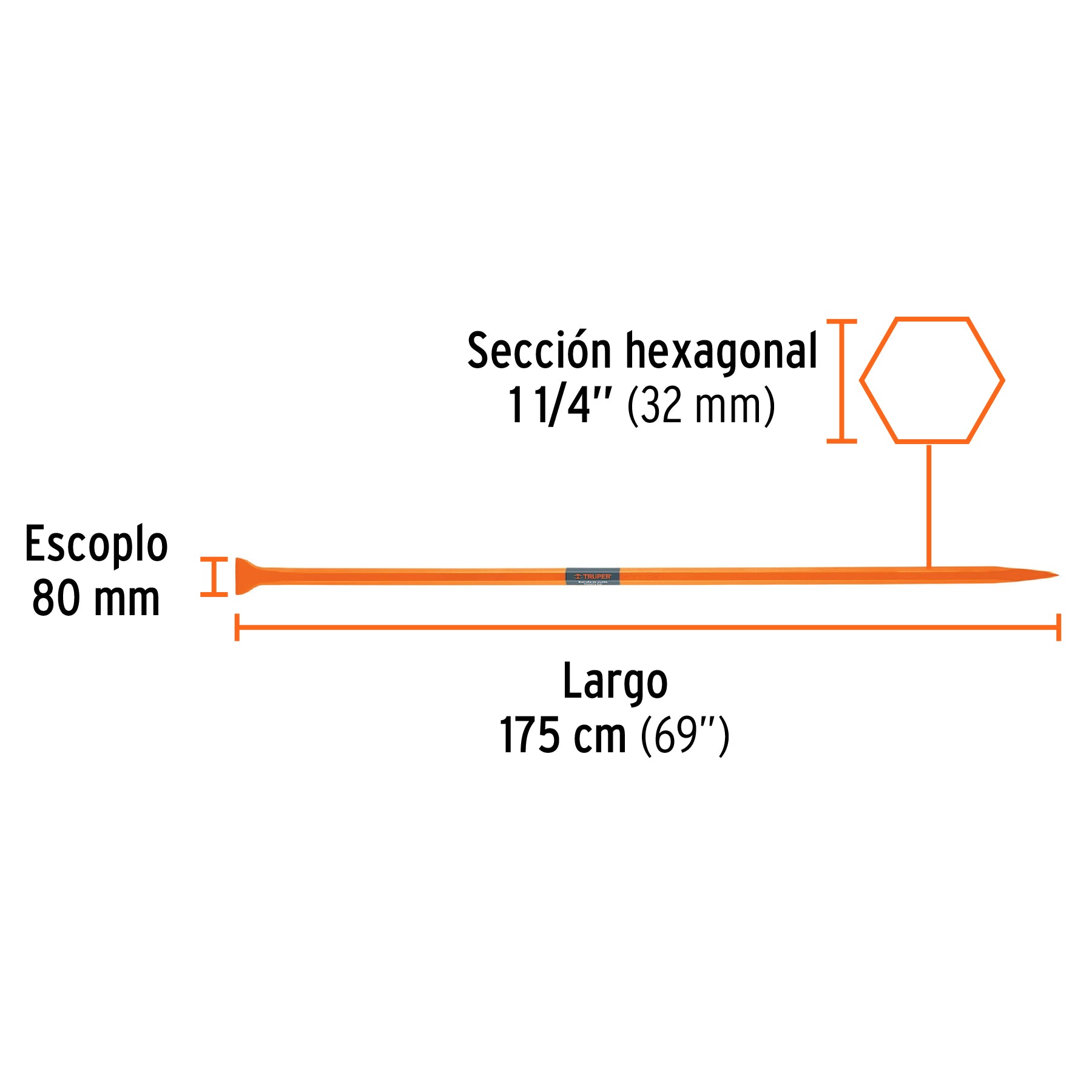 Barreta de punta de 1-1/4" x 175 cm, alcance 80 mm, Truper