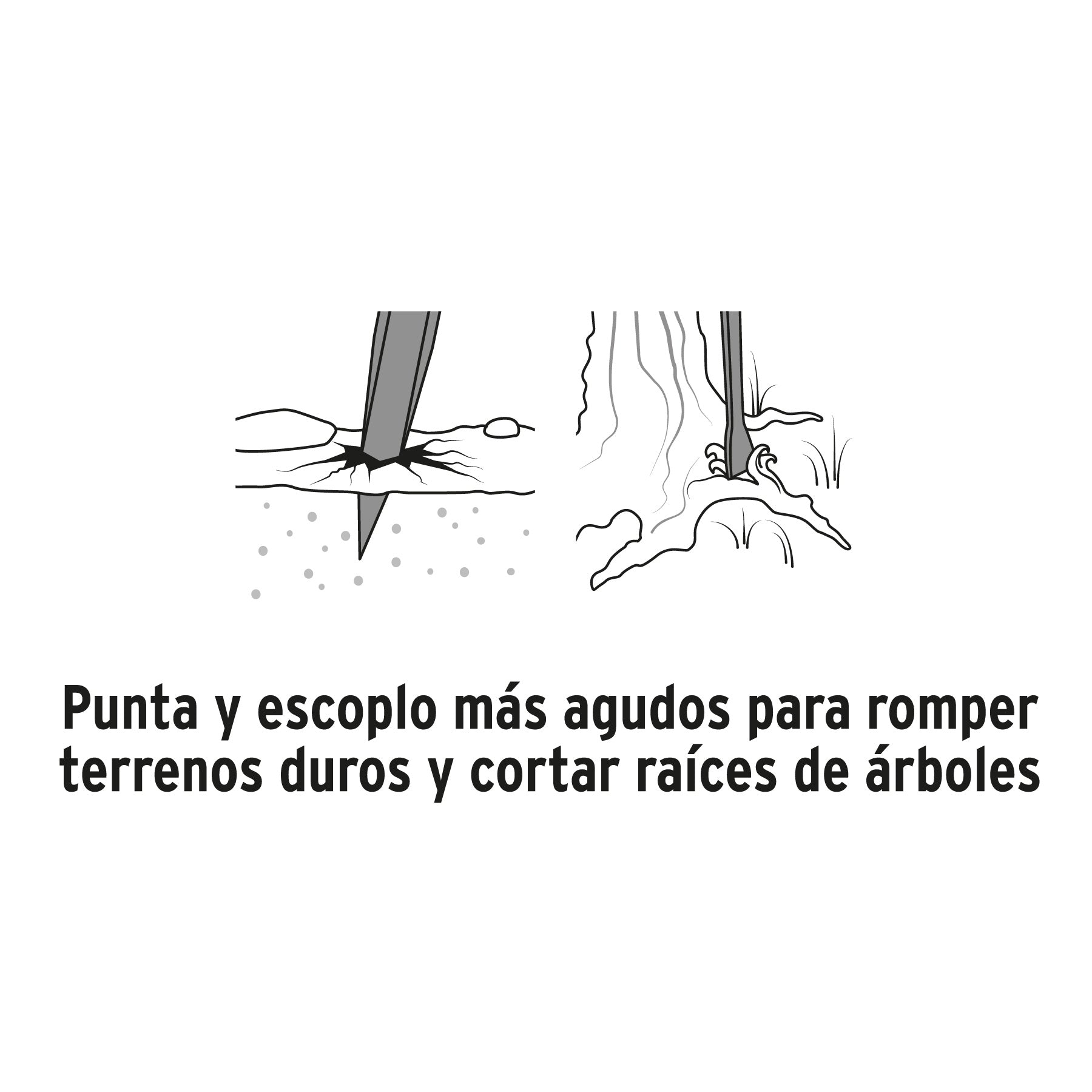 Para perforar superficies duras de tierra, piedra o concreto y demoler, romper o cortar raíces de árboles