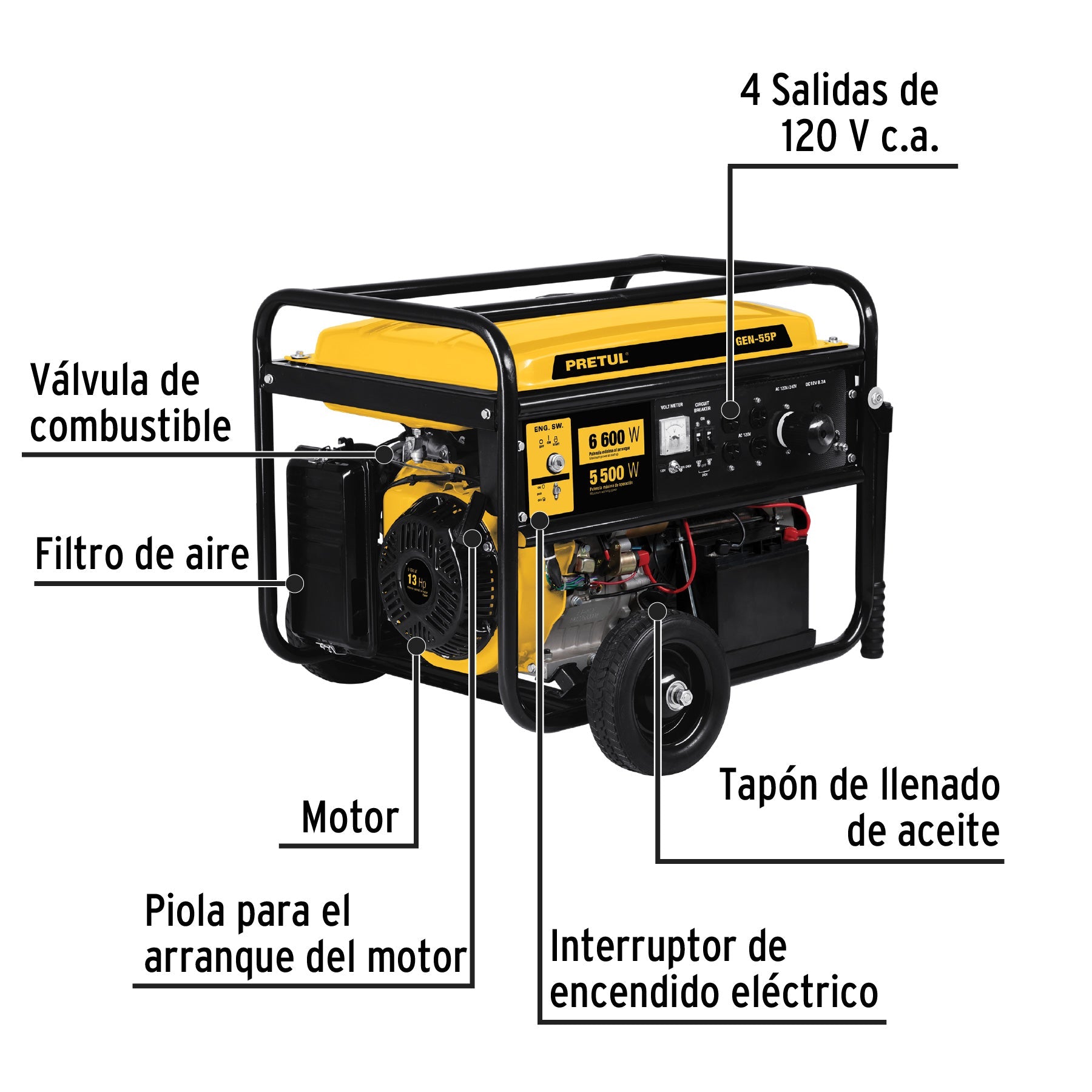 Generador portátil 5.5 kW motor a gasolina, PRETUL