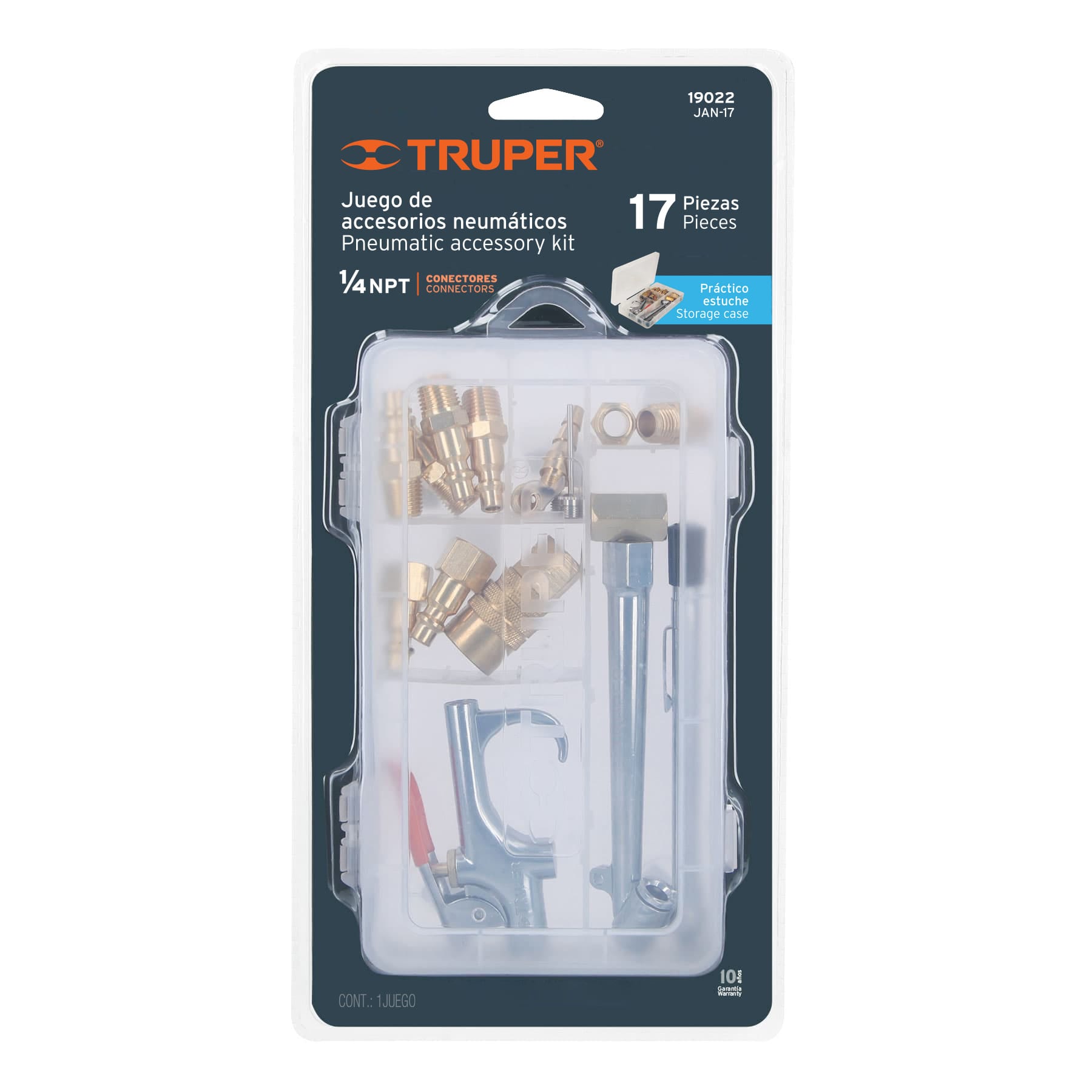 Juego de 17 accesorios neumáticos, cuerda 1/4" NPT, TRUPER