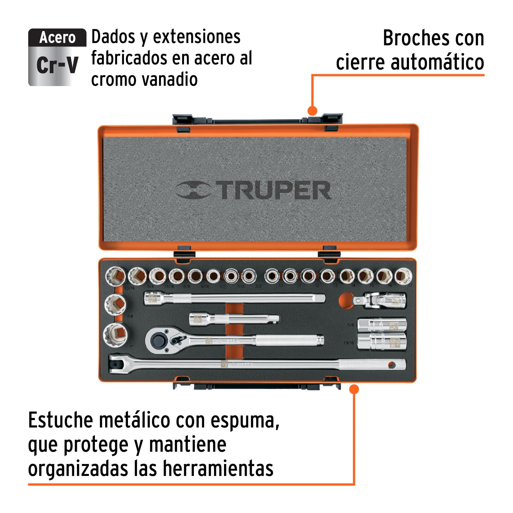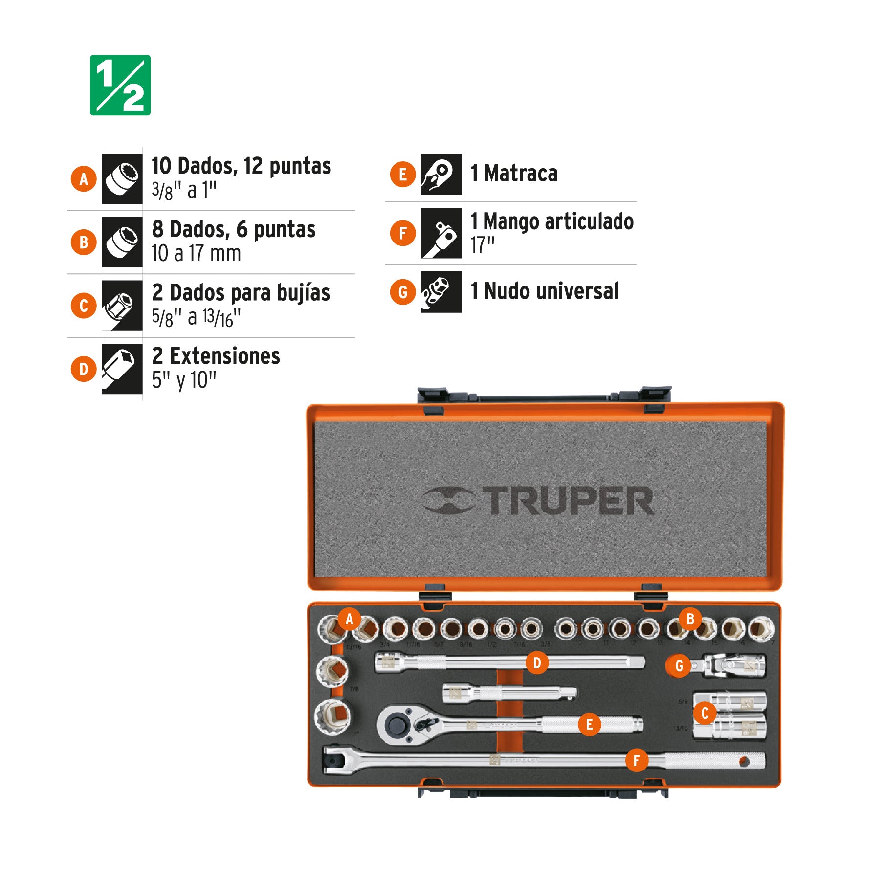 Juego de 25 herramientas cuadro 1/2" std y mm para mecánico