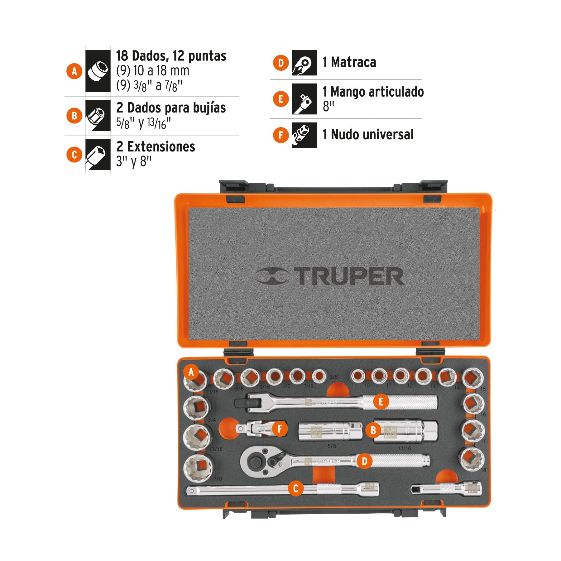 Juego de 25 herramientas cuadro 3/8" std y mm para mecánico