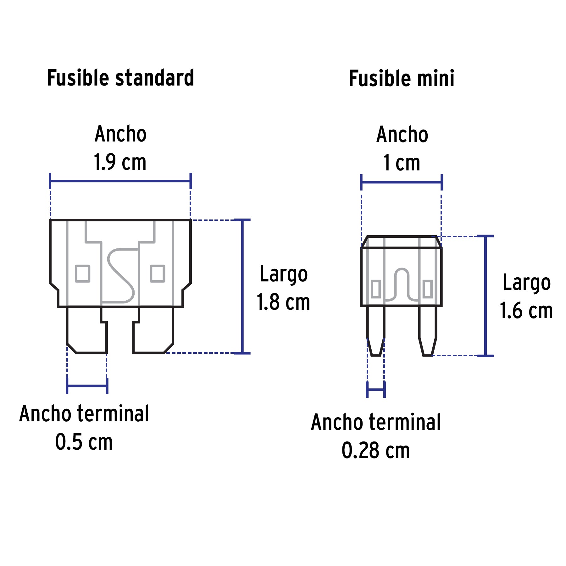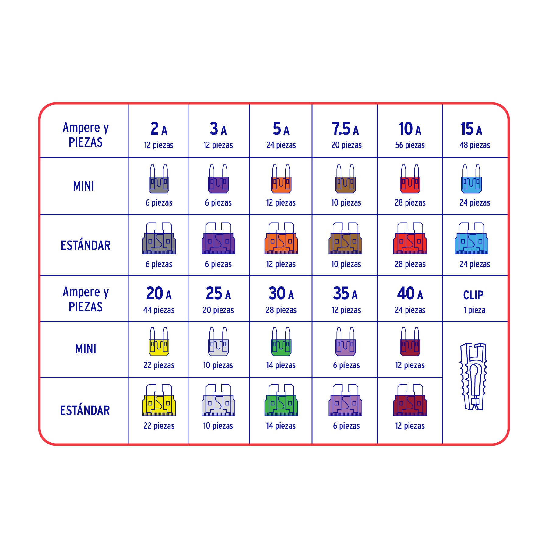 Contiene los fusibles más usados en automóviles, camiones y todoterrenos