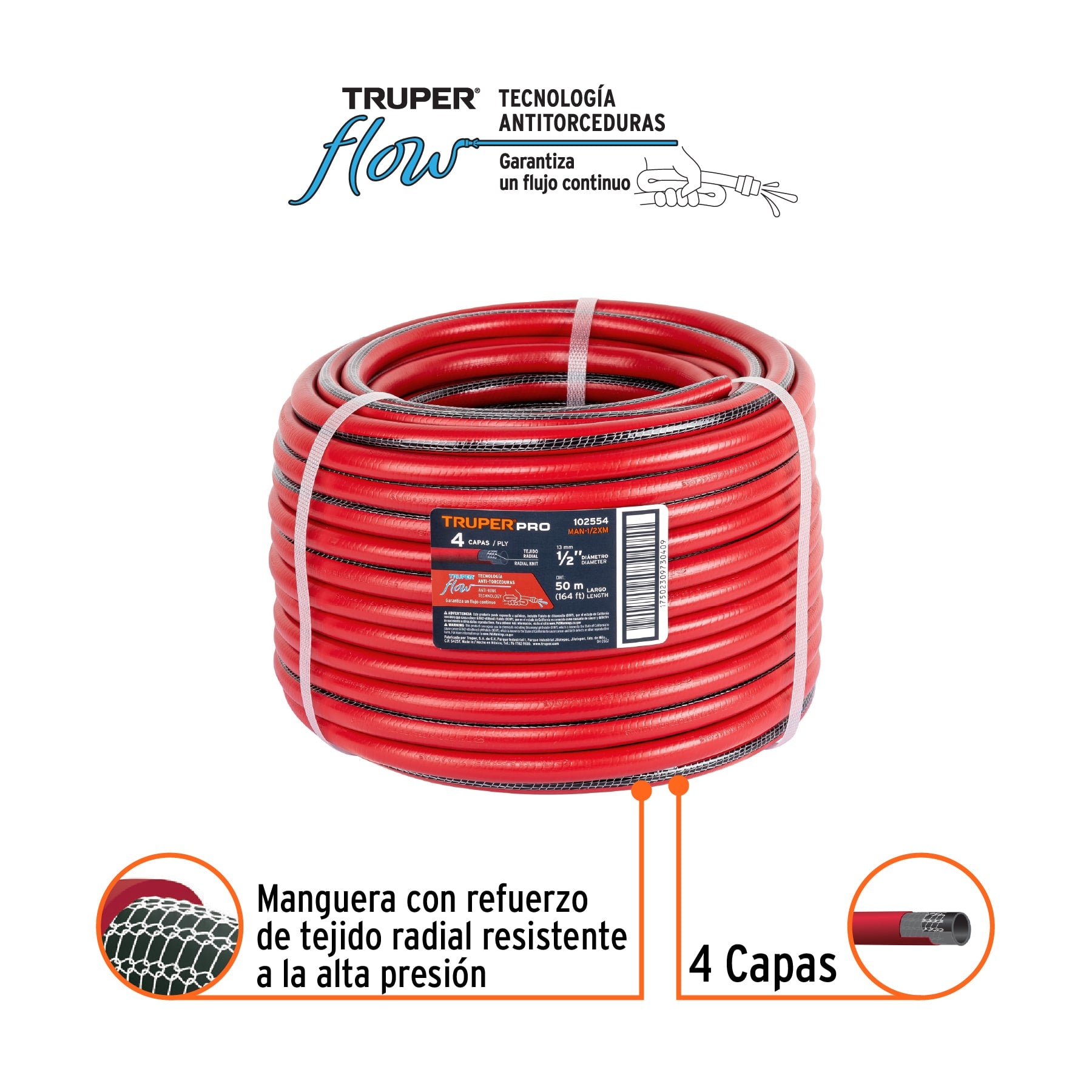 Metro de manguera 1/2" 4 capas en rollo de 50 m, Truper