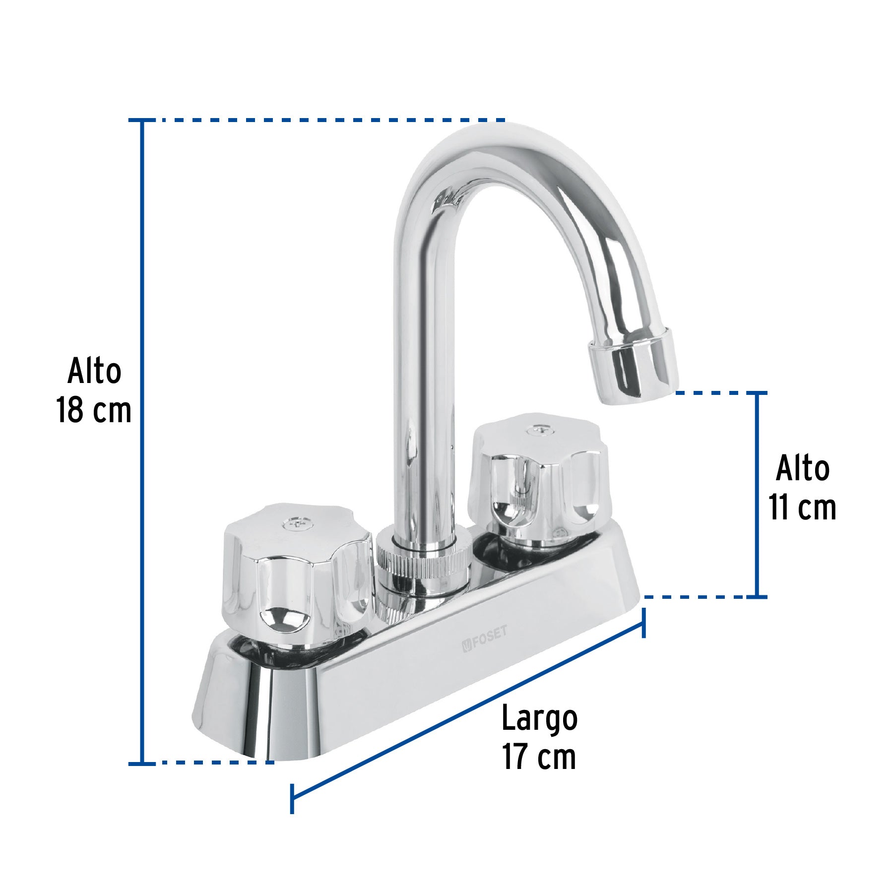 Mezcladora 4" lavabo, ABS, cuello bar, hexagonal, BASIC