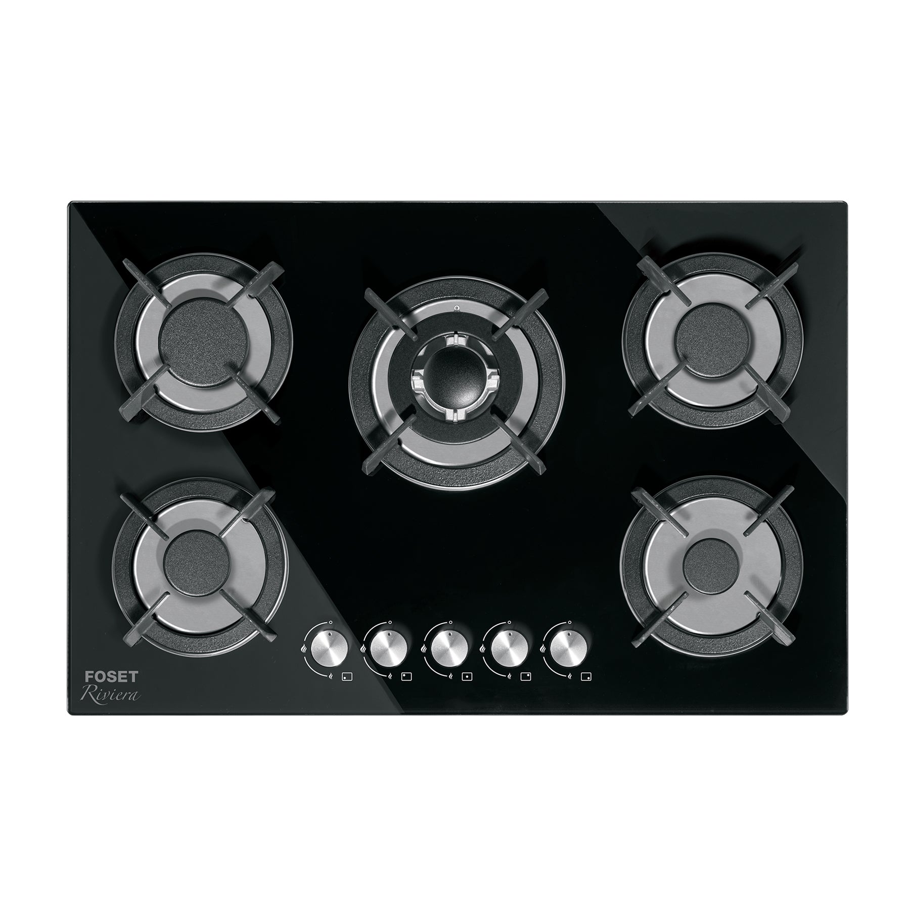 Parrilla gas empotrable 75cm, 5 quem, vidrio negro, RIVIERA