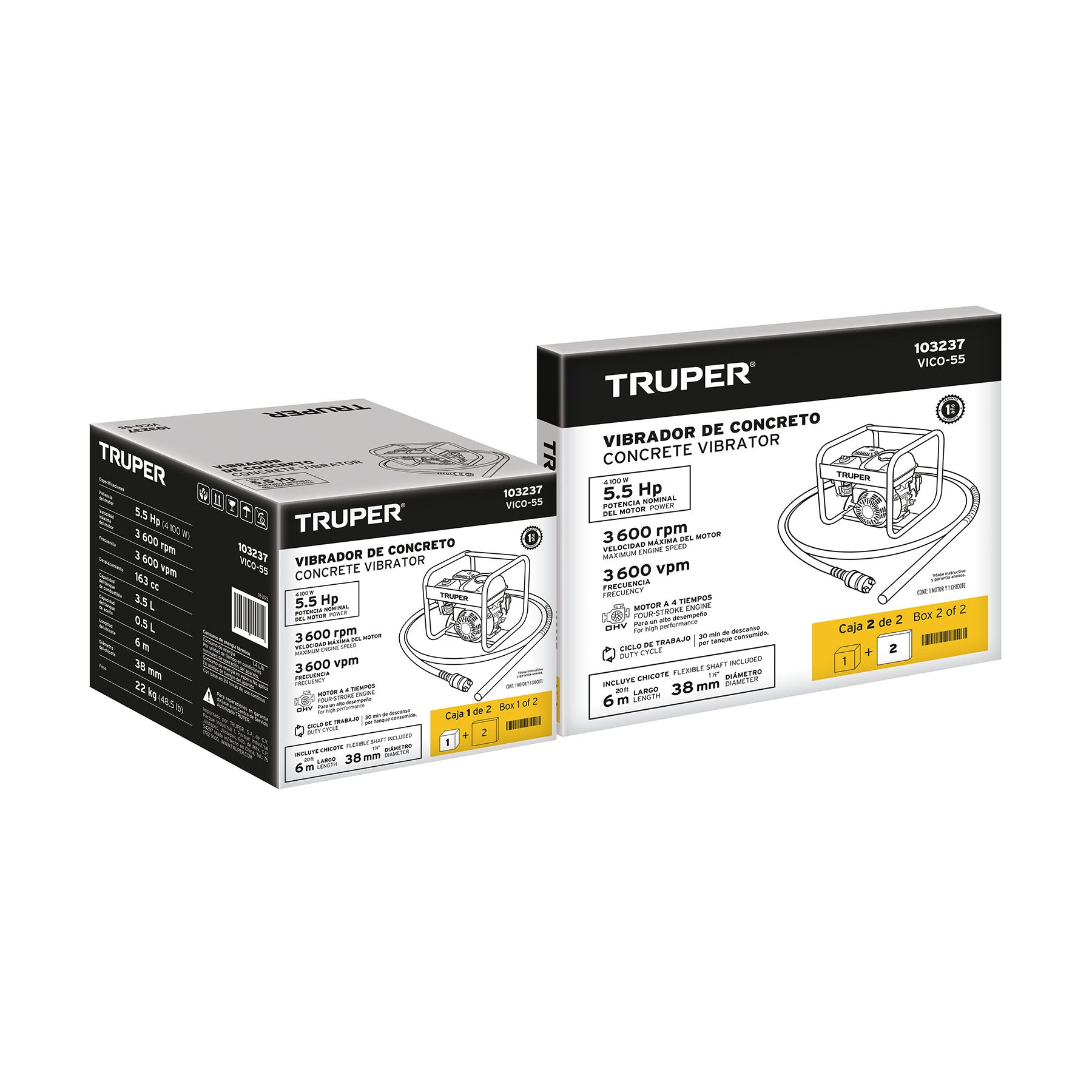 Vibrador para concreto con motor a gasolina, 5.5 HP, Truper